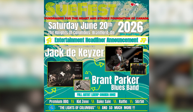 Knights of Columbus, 12 Catharine Ave., Brantford 12th Annual SueFest 2026 – LIVE Music Festival June 20, 2026 | Knights of Columbus (12 Catharine Ave.), Brantford Get Your Digital Tickets Here! Hard copy tickets available starting May 4 at the Knights of Columbus, Brantford, ON Featuring a stellar line-up of musicians, including Jack de Keyzer and the Brant Parker Blues Band and more! […]