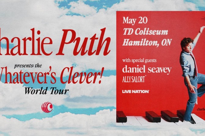 TD Coliseum, Hamilton Charlie Puth The Whatever’s Clever! World Tour May 20 | TD Coliseum, Hamilton Featuring special guests Daniel Seavey and Ally Salort Internationally acclaimed, multi-platinum and award-winning artist, producer, musician and songwriter Charlie Puth today announced the Whatever’s Clever! 2026 World Tour, revealing headline dates across North America, Europe and the United Kingdom. The tour will […]