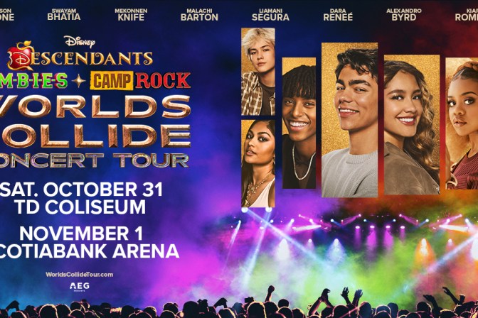 Scotiabank Arena, Toronto Disney Unveils 2026 ‘Worlds Collide Concert Tour’ Dates Featuring Stars From ZOMBIES, DESCENDANTS, & CAMP ROCK The tour will visit 48 arenas across the U.S., Canada and Mexico starting September 25th at Acrisure Arena in Palm Desert, CA. Tour dates and on-sale information have been revealed for the next “Worlds Collide Concert Tour” of North America coming in […]